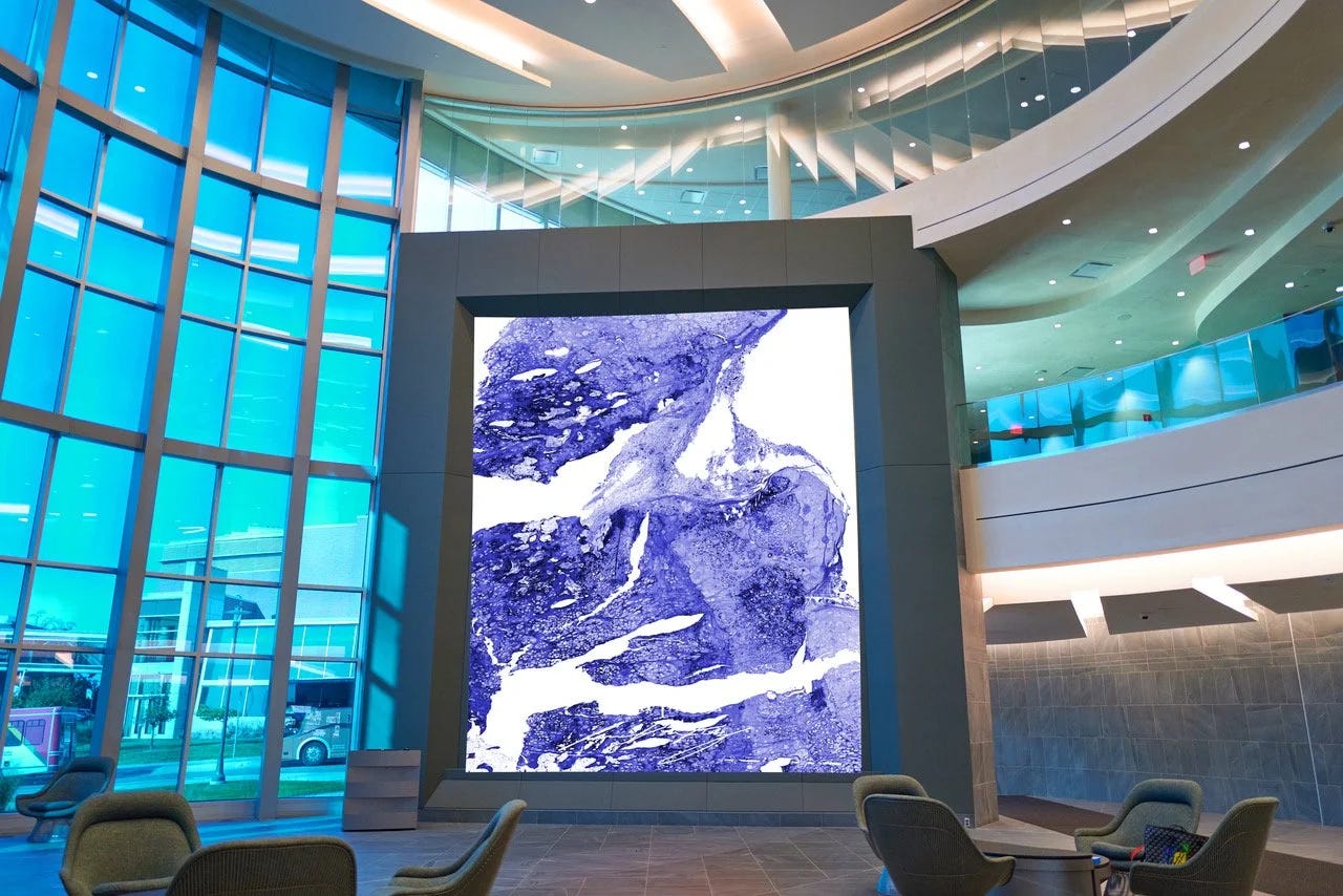 In 2016, I received a commission to do a multi-work installation for a very large new UNMC orthopedics building. My vision was one of hope and possibility, creating landscapes from cancer cells and bright abstractions from broken bones. I was asked to become involved with a new Healing Arts Board over seven years ago. At the time, it was part of the Buffett Cancer Center at UNMC/Nebraska Medicine. Since that time, I’ve seen the program grow statewide. ART HEALS.