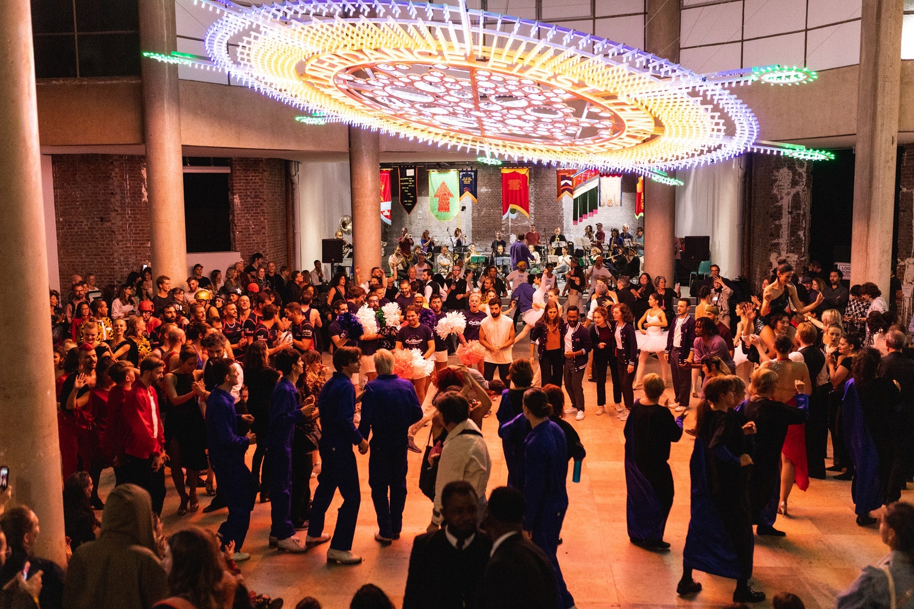 At its core, my practice challenges traditional hierarchies - between artist and audience, teacher and student - fostering horizontal, shared creative experiences, exploring new ideas of community building and collective rituals, gathering thousands of people every time.