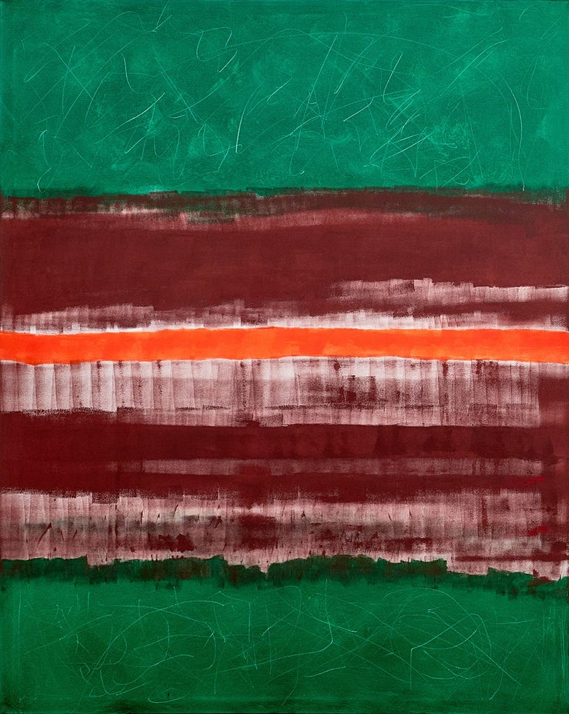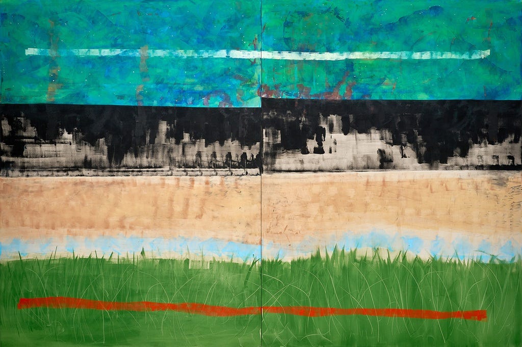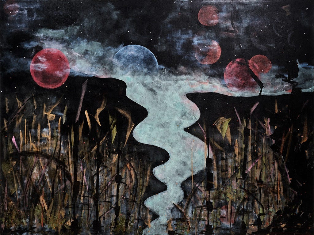 Transformation is a process; this painting was the prettier part. That is the beautiful thing about painting for me: I can take those difficult feelings and push them through to a more enlightened, less dense place in myself and hopefully into the piece. River is a meaningful piece in my private collection, because it does afford the understanding of acceptance.