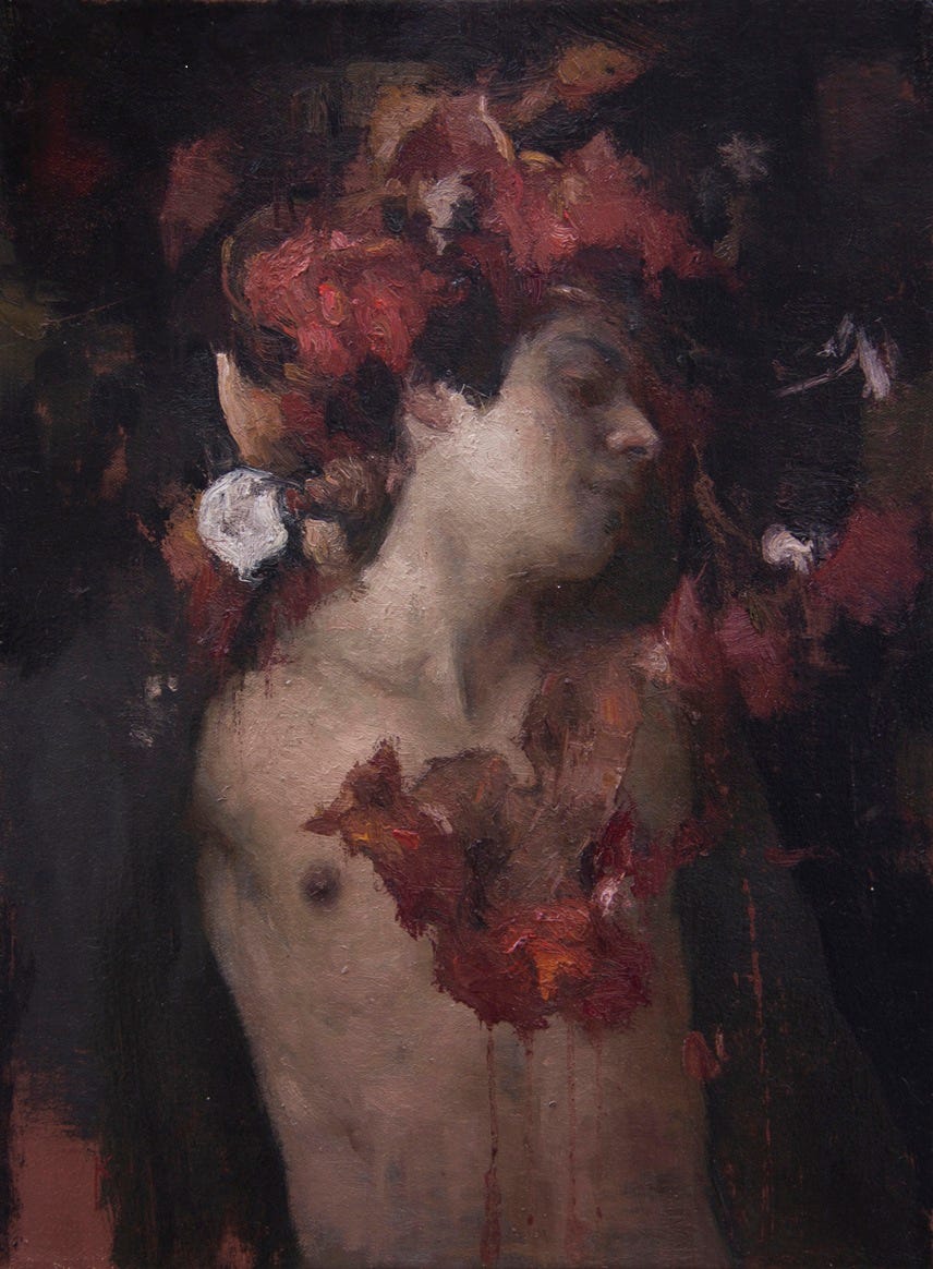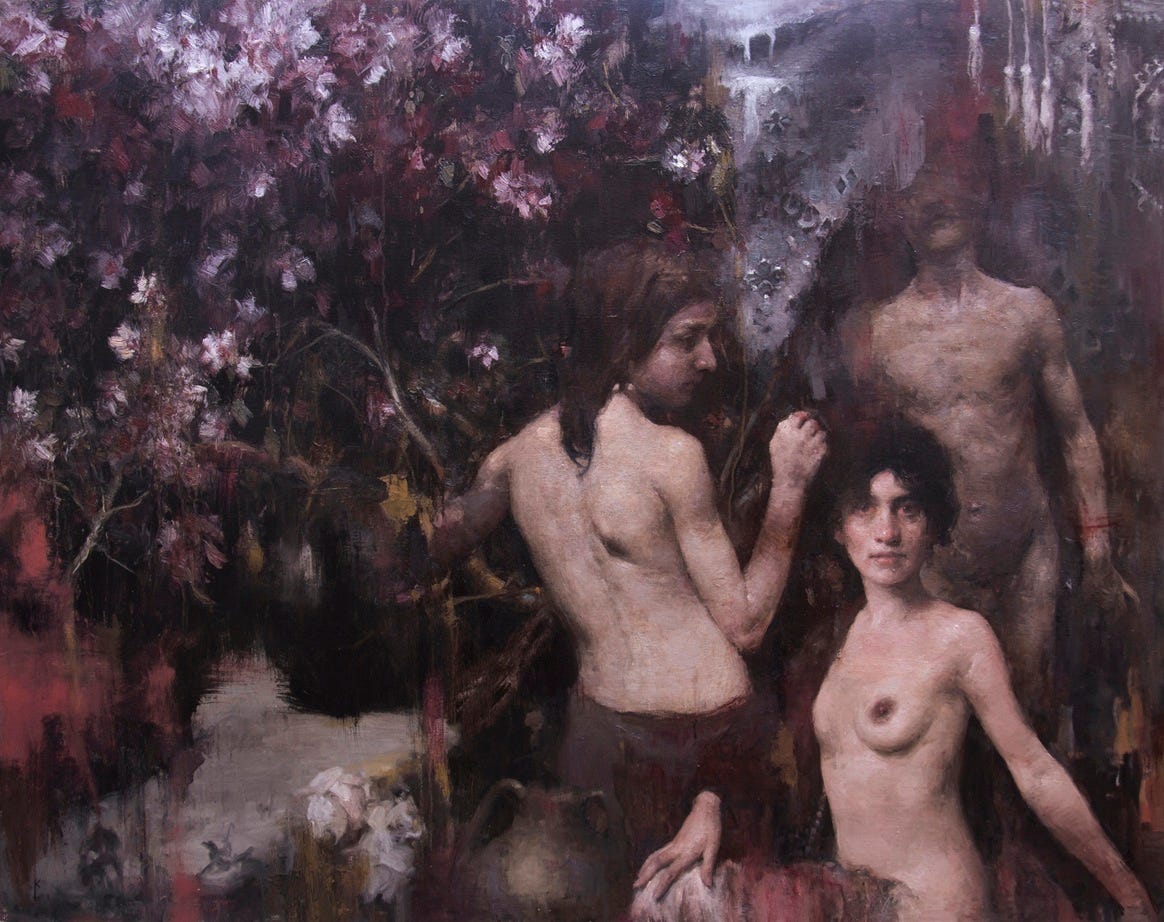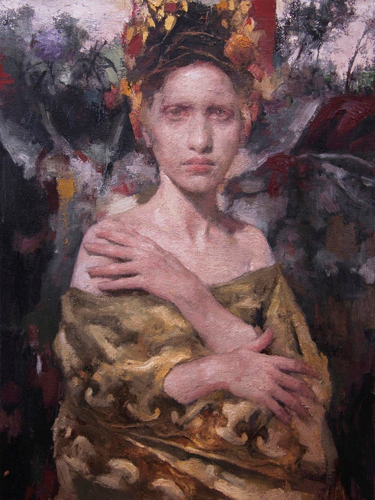 I am constantly scrutinizing the techniques of the old masters, especially those of the Baroque era. Therefore, my process starts with the traditional methods of oil painting. Then I like to explore the freedom and the possibilities that painting is giving us.